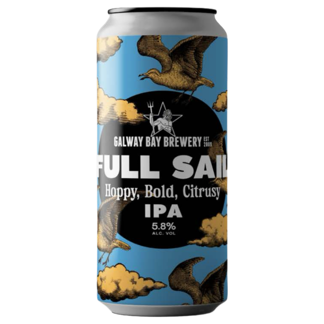 Galway Bay Brewery's Full Sail Indian Pale Ale charts a course for hop-forward refreshment with this classic IPA. Pouring a bright, golden-amber hue, the beer immediately captivates with its fragrant bouquet of citrus zest, resinous pine, and delicate floral notes.