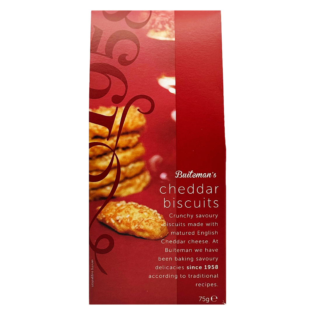 Crunchy savoury biscuits made with 12 months matured English cheddar cheese.