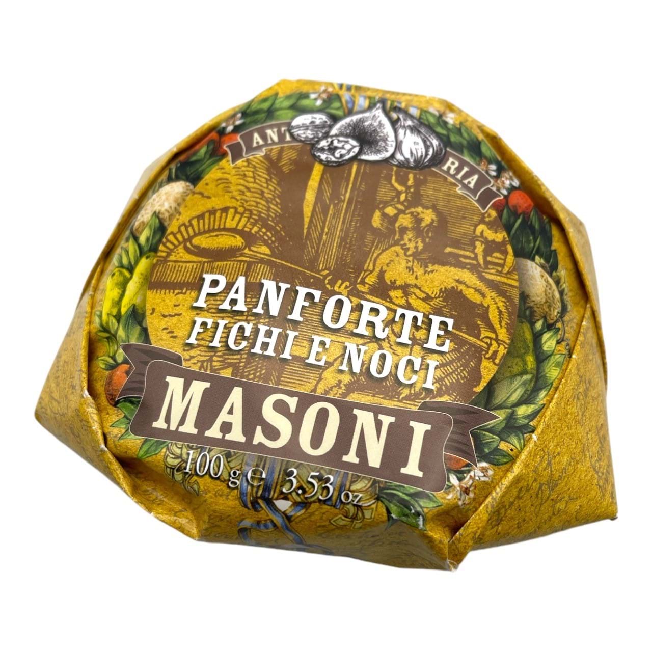 This particular variety of panforte was born from an idea of Giuseppina Bonelli. Given the shortage of raw materials during wartime, she came up with a panforte containing the dried fruit then available in Tuscany, that is dried figs and walnuts; today, this panforte has become one of the best-selling and most appreciated Masoni products, even among those who are not fond of candied fruit, which the product lacks; figs and walnuts are two ingredients once considered poor, however today they enhance each other perfectly creating a unique and successful product!