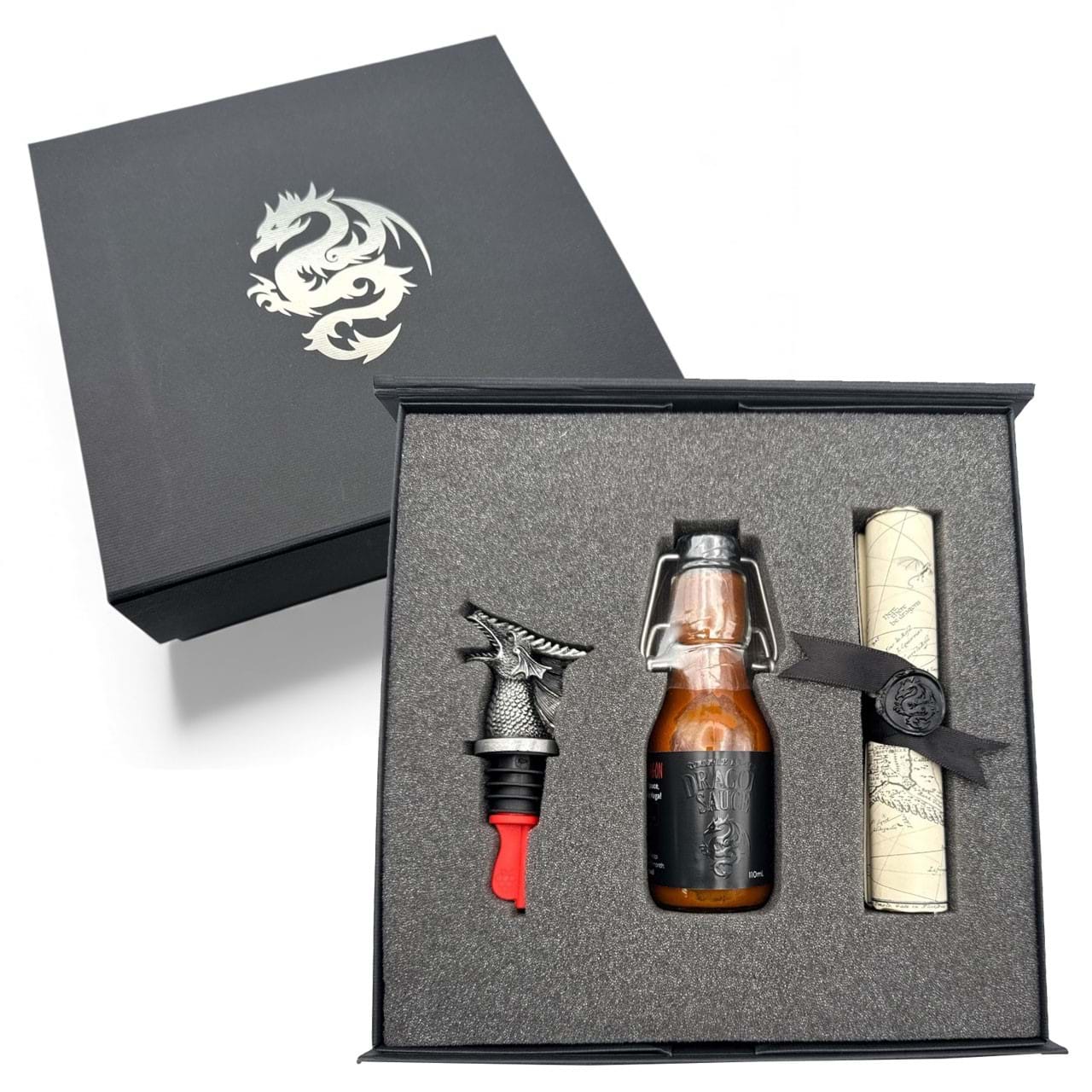 DRAGON SAUCE Black Dragon 'Triple Hot' Spicy Chilli Hot Sauce LIMITED EDITION PRESENTATION BOX (Made in Jersey)