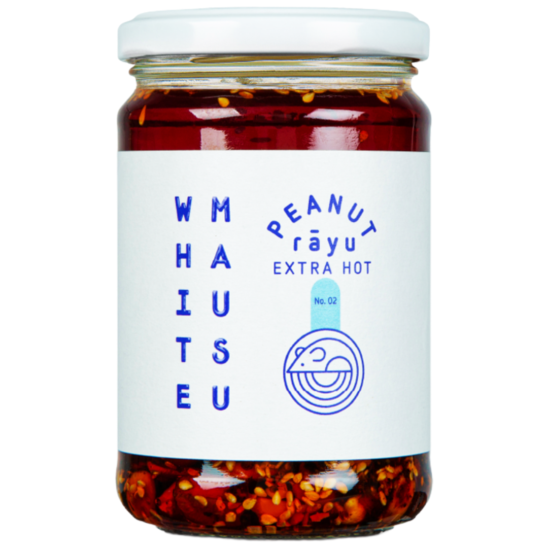 Use this extra hot version of White Mausu’s best-selling peanut rayu to spice up stir-fries, sauces and scrambled eggs. To their original blend of roasted peanuts, sesame and gochugaru (Korean chilli flakes), they have added chilli d’arbol for an extra boost of mouth-tingling heat. Agave adds mellow sweetness to balance the rich, savoury notes of tamari and crunchy fried garlic.
