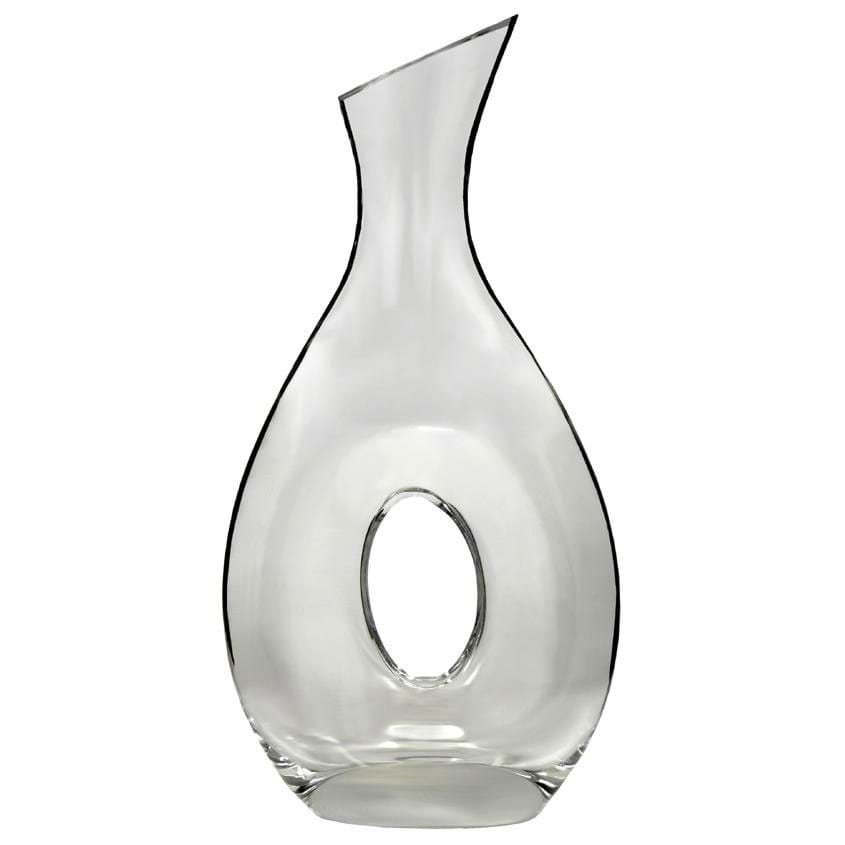The unusual oval shape of this decanter creates decanting lines that disrupt the wine to aerate it.