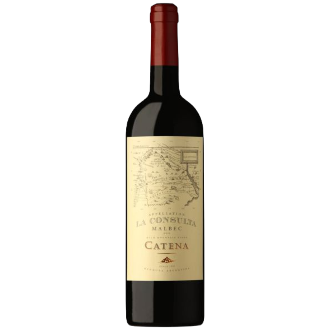 Catena Malbec "Appellation La Consulta" 2019 — cool, high altitude Malbec — deep ruby with garnet edges. Intense black cherry, brambly blackberry and wild blueberry with violet and dried lavender; savoury cocoa, graphite and smoked meat notes, and a saline, crushed stone minerality. Medium plus, sleek palate: fine tannins frame blackcurrant, plum, baking spice, white pepper and a dark chocolate bite; bright acidity drives a long, stony finish. Old vines on limestone terraces, judicious French oak. Drink 2026–2036 (peak 2028–2034). Critics: James Suckling 93 — "Very refined and polished." Vinous 92 — "Expressive... terse texture and gentle, voluminous palate." The Wine Advocate 92 — "Primary and fruit driven, with good freshness." Pair with grilled lamb, pepper crusted steak, roasted mushrooms and aged Manchego.